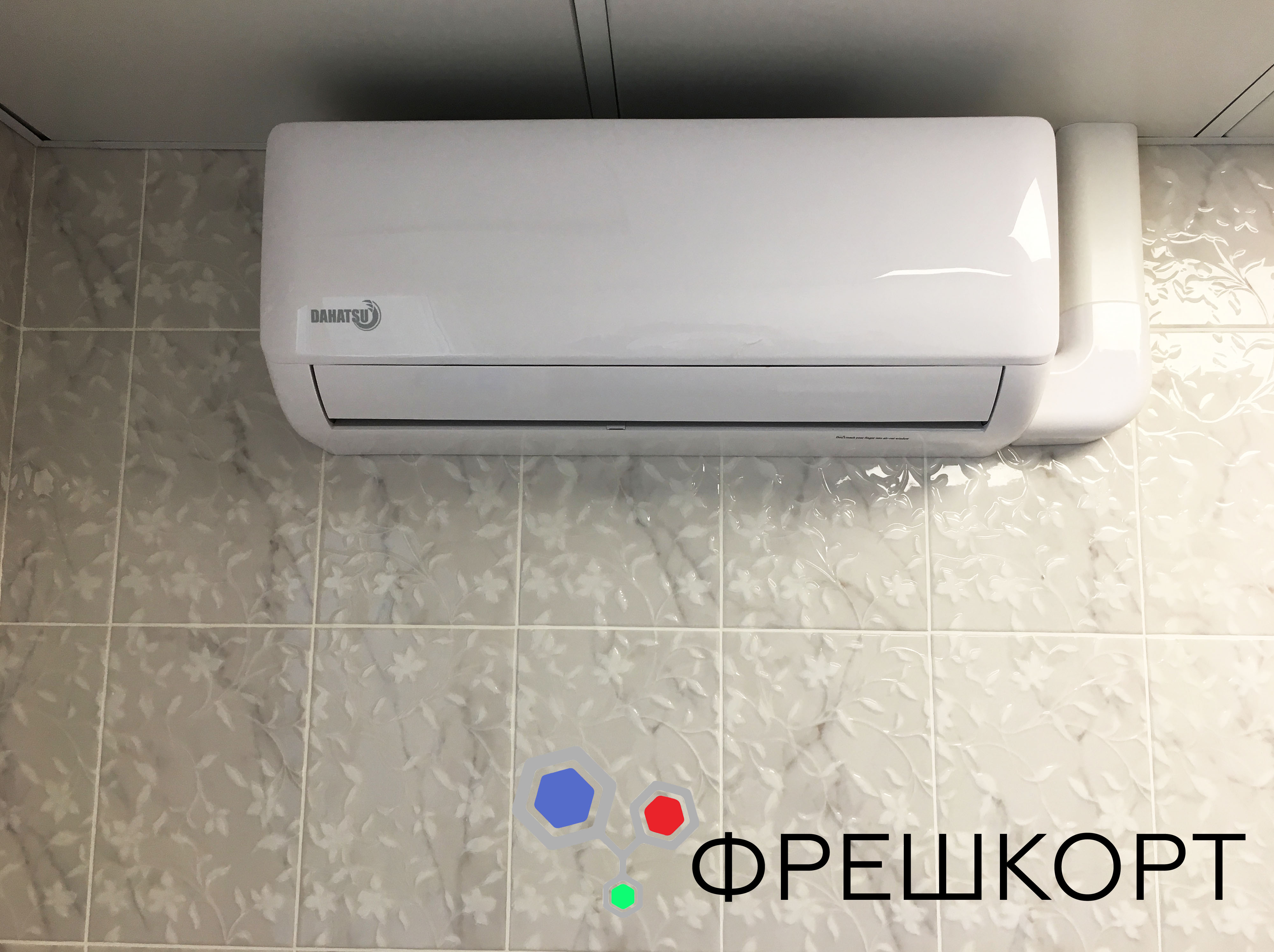 Монтаж кондиционера Dahatsu с дренажной помпой в клинике со сделанным ремонтом